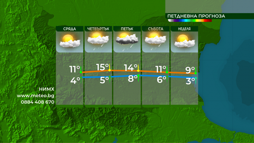 Ще стартира стопляне, което ще продължи и в четвъртък, когато облачността още веднъж ще се усили и в северозападните региони ще превали дъжд. Вятърът от югозапад ще се усили, по-съществено в Източна България.