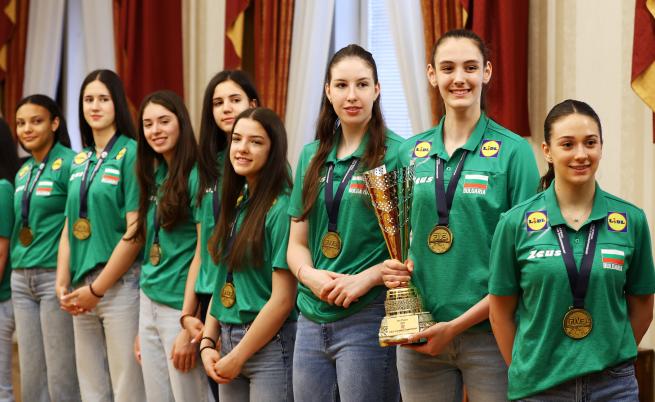 Президентът Радев връчи Почетен плакет на световните шампионки по волейбол до 19 г.