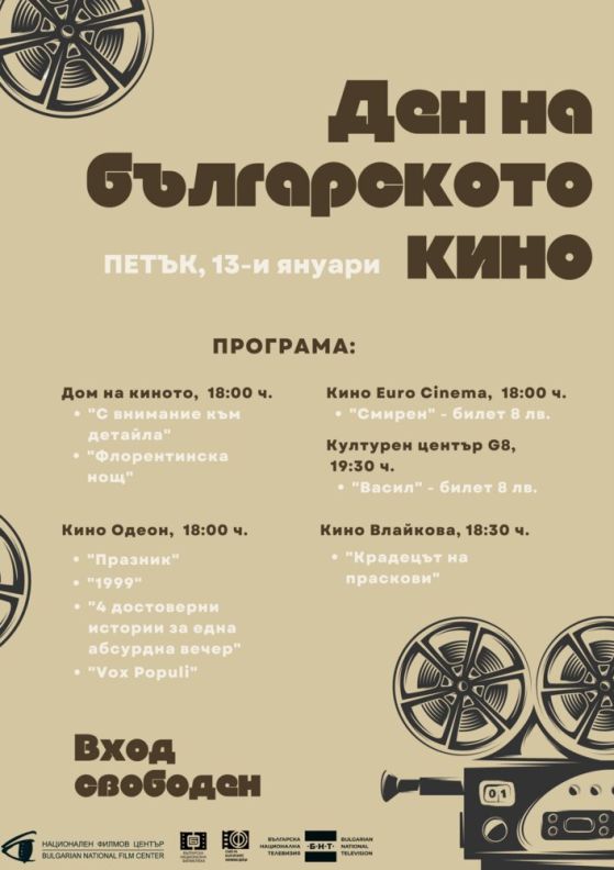 " Повод за това е освен 13 януари - датата, призната публично за Ден на българското кино, само че и отбелязването на 100 години от рождението на Въло Радев, както и министър председатели на дълго чакани български филми и една копродукция ", разясняват от НФЦ.