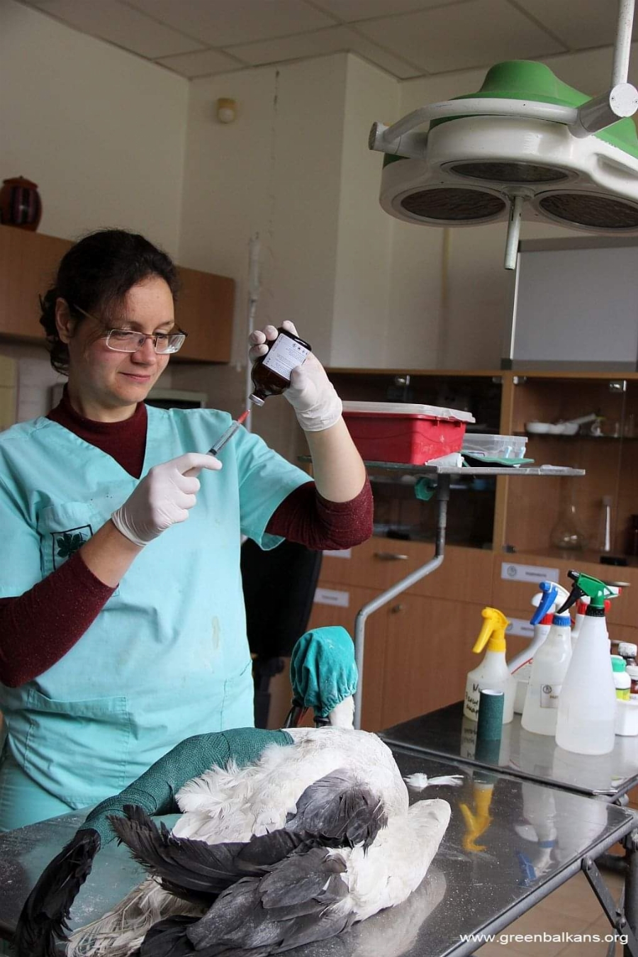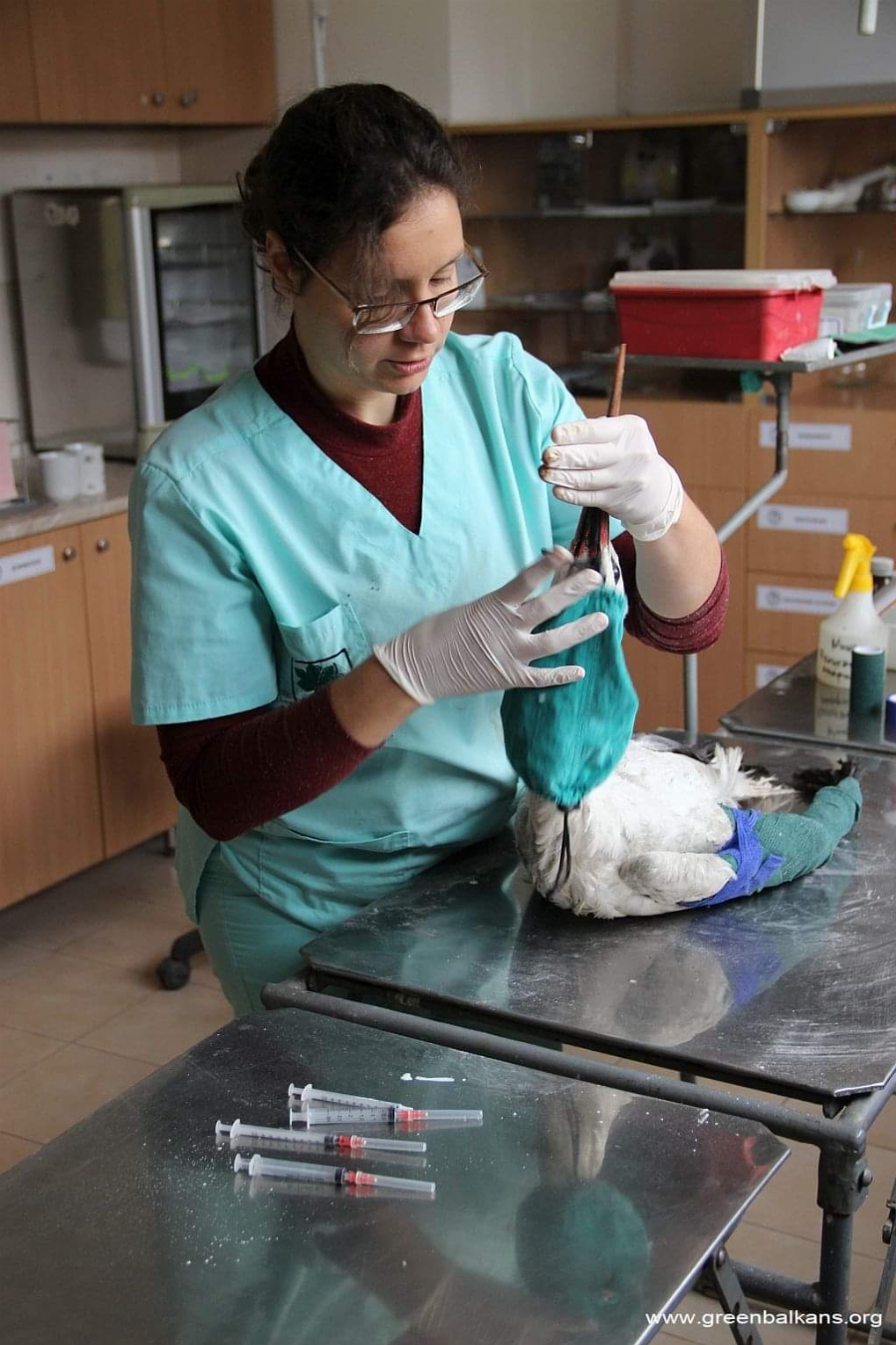 При прегледа на птицата ветеринарните лекари откриват, че тя е слаба и с проблем в едното крило.