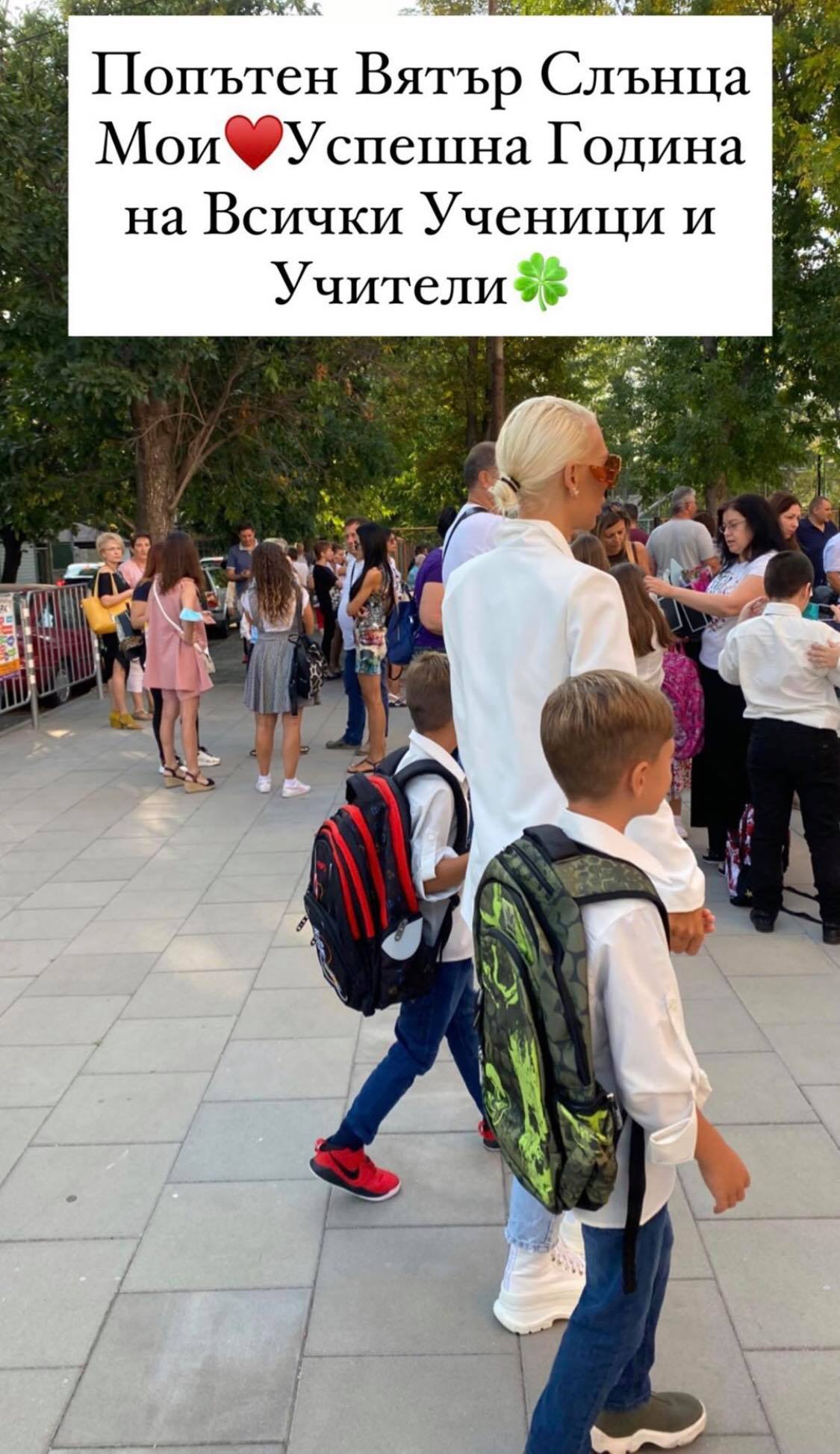 Първият звънец удари и за синовете на еднa от най-открояващите се дами под тепетата Ралица Тошкова, която не пропусна да показа блага фотография от учебния двор.