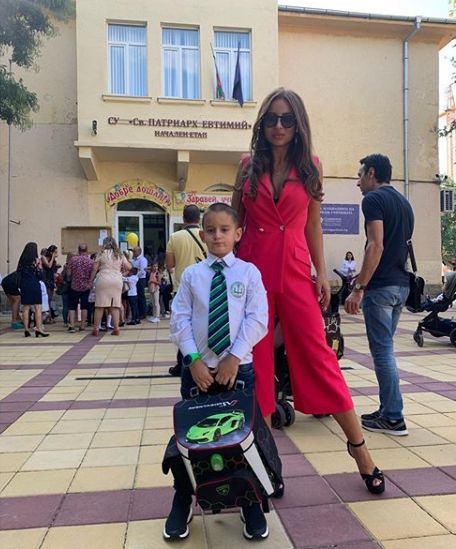 „ Дойде и първият образователен ден-отваряме нова житейска страница,сърцето ми е изпълнено с неспокойствие.Мило мое дете,желая ти учението да открие нови хоризонти пред теб,жажда за познания и обич към този нов свят!Мама постоянно ще бди над теб и ще те предизвиква!Успех и на добър час,сърце мое! “ – написа гордата с наследника си майка, която за следващ път събра погледите, показвайки усета си към модата.