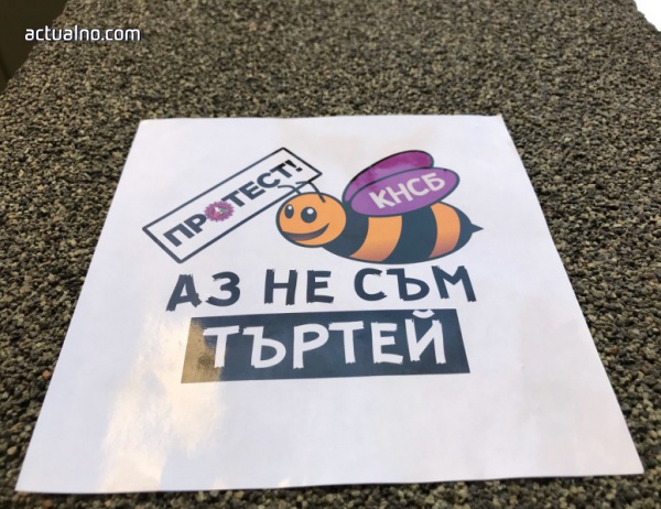Протестът на КНСБ започна, облепиха сградата на АИКБ с търтеи