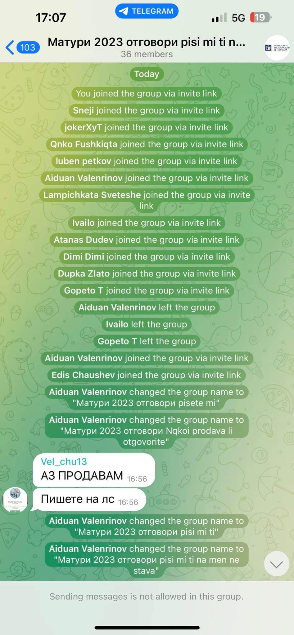 Иновциите в тази процедура не стопират до тук. Нашият четец споделя, че към този момент има основан и развъртян Телеграм канал, в който може да влезеш и да видиш разнообразни предложения за отговори. Може би измамниците са избрали тъкмо тази платформа тъй като анонимността е обезпечена, а приложението е познато като такова, което пази известията. От фотосите изпратени до медията ни се вижда по какъв начин в канала са добавени група от хора, някои от които са записани с псевдоними.