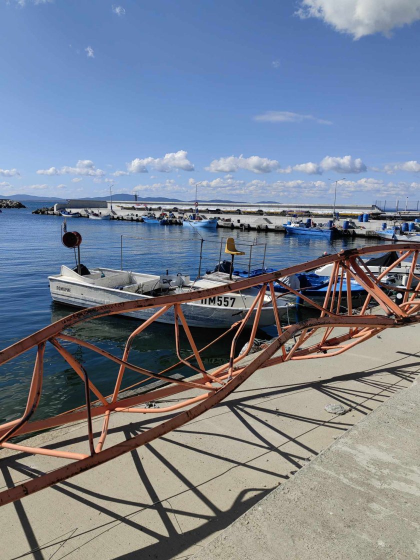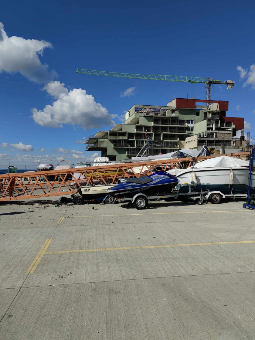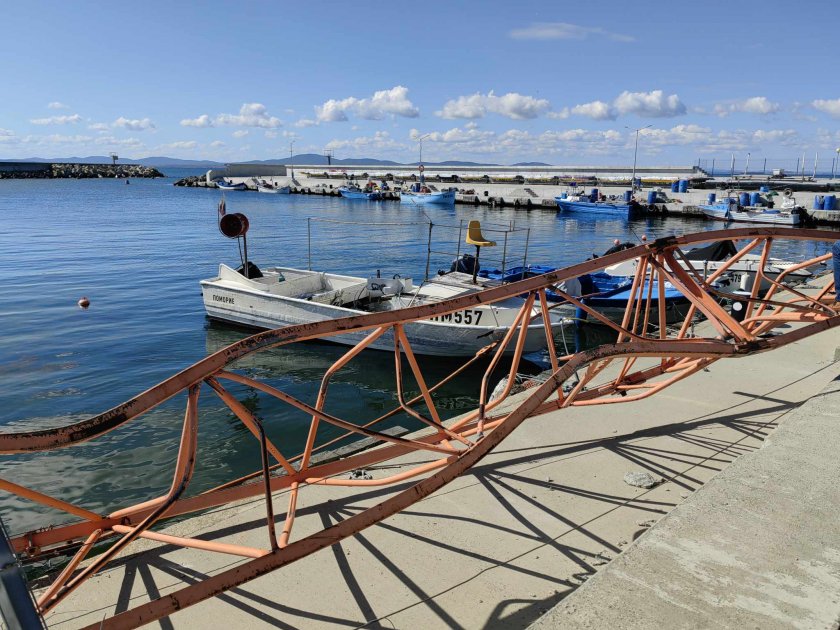 Кранът е паднал върху много лодки на новото пристанище в града, намиращо се покрай известния хотел и ресторант " При американеца ".