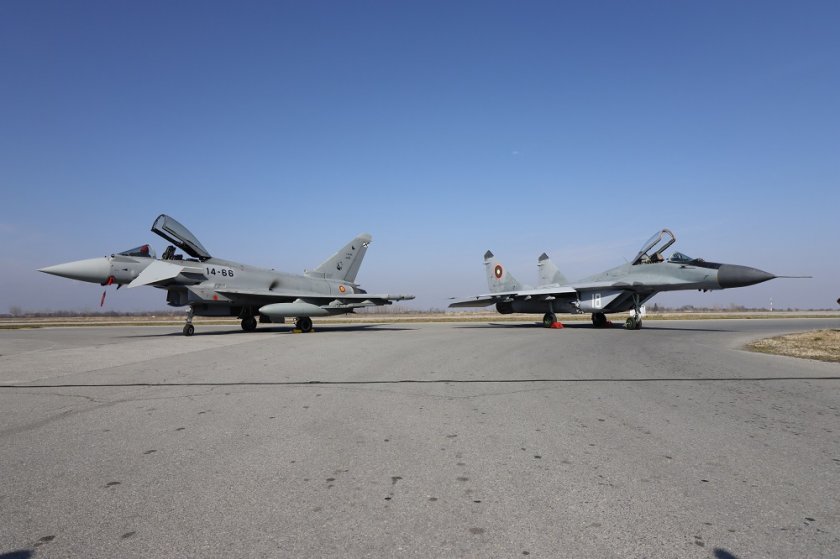 В България дойдоха 4 испански изтребителя " Юрофайтър Тайфун ", които дружно с българските МиГ-29 ще извършват взаимно задания по усилена защита на въздушното пространство до 31 март. Очакват се и изтребители от Нидерландия.