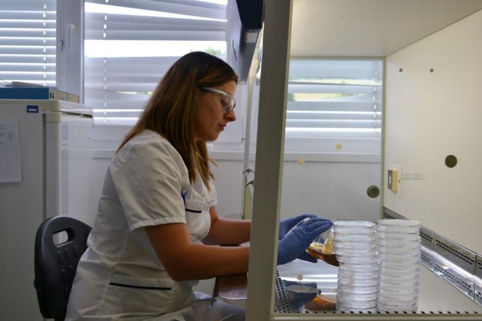 Приготвяне на микробиологични среди в ламиниран бокс, който обезпечава стерилна средаСофийска вода