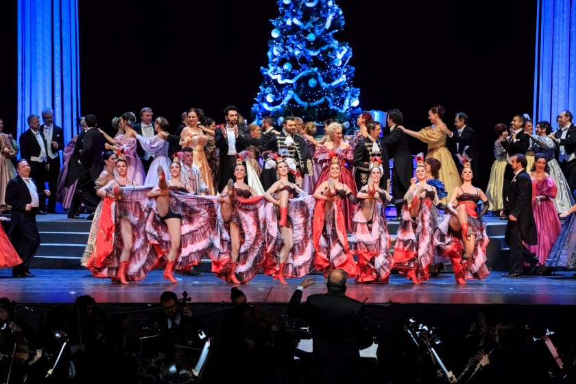 На 28 декември след едногодишно спиране поради пандемията, Музикалният спектакъл кани феновете на своя Новогодишен оперетен бал. По традиция балът е в зала 1 на НДК, с цел да събере огромния брой искащи да се допрян до блясъка и жизнеността на постоянно оптимистичния род на оперетата. Тази година за първи път наред с обичаните шедьоври на оперетната класика от Щраус, Лехар и Калман, в концерта-спектакъл ще прозвучат и известни оперни произведения от Бизе, Росини и Верди.