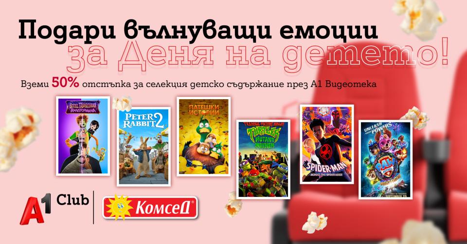 По случай Международния ден на детето A1 клуб и Комсед подаряват на клиентите на Xplore TV 50% отстъпка на определени детски анимационни филми с обичаните герои. Сред заглавията в А1 Видеотека са както някои от най-новите, по този начин и някои от най-обичаните анимации като „ Патешки истории “, „ Тролчетата “, „ Зайчето Питър 2: По необятния свят “, „ Смърфовете “ и доста други.