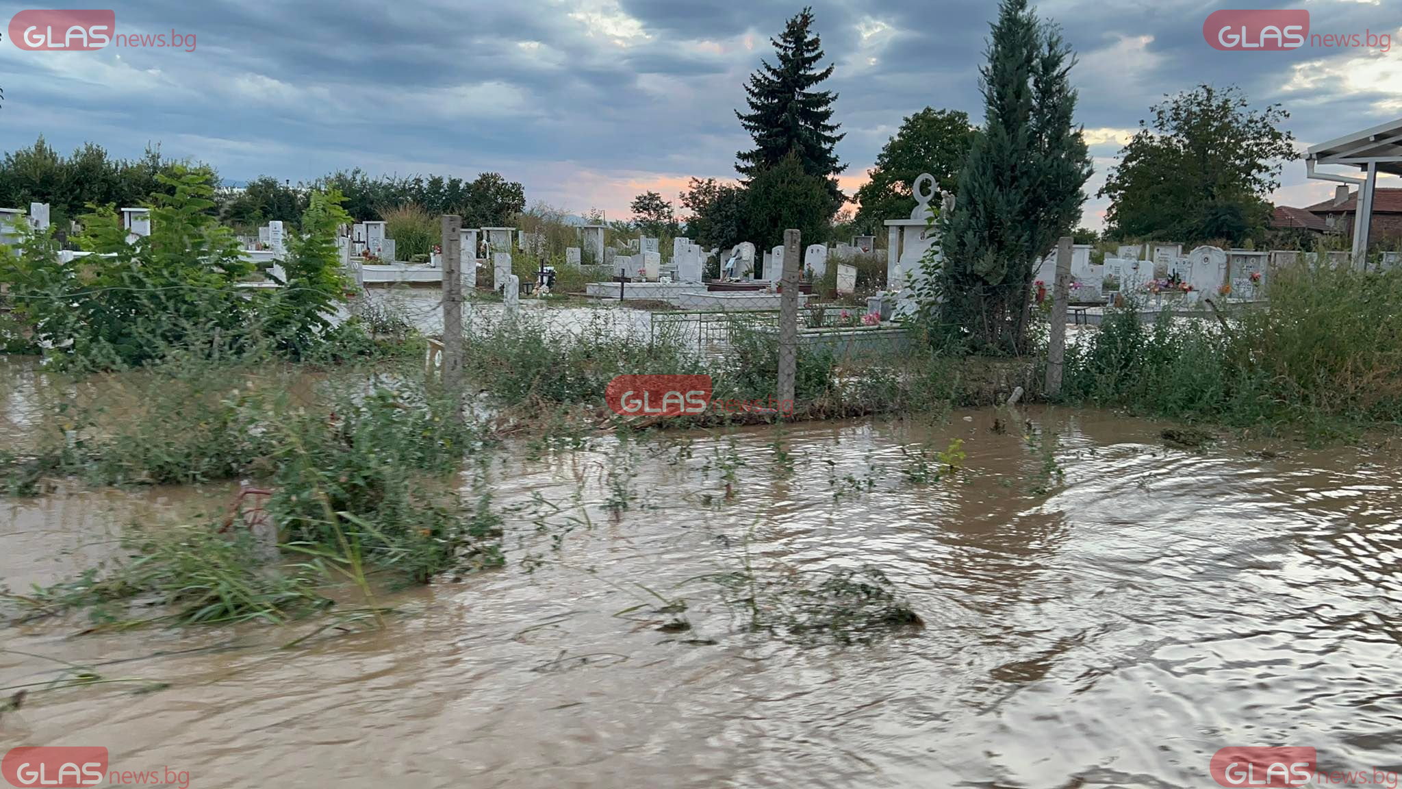 Улиците са превърнати в пълноводни реки. Една сграда е съборена, първите етажи на къщите, както и гробищният парк са под вода.
