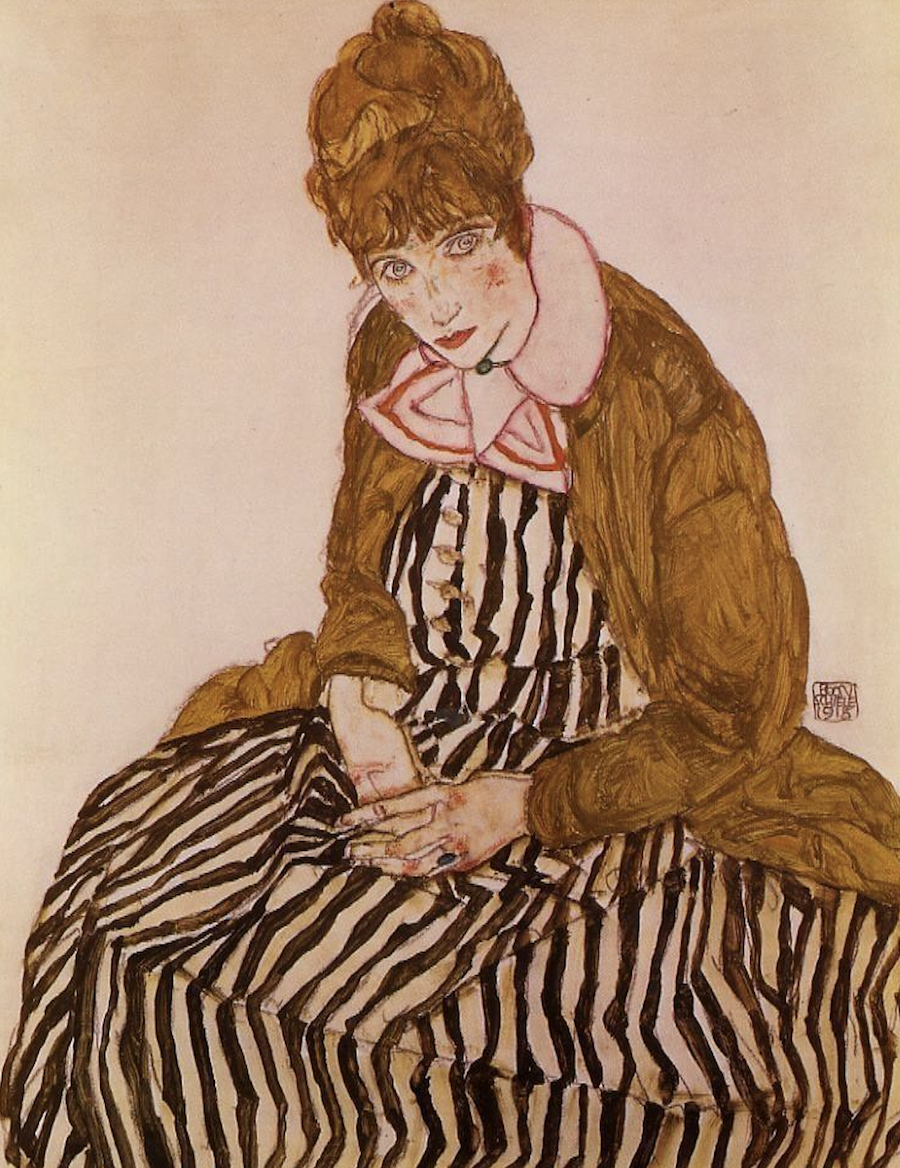 („ Edith Schiele Seated “, 1915, by Egon Schiele)
