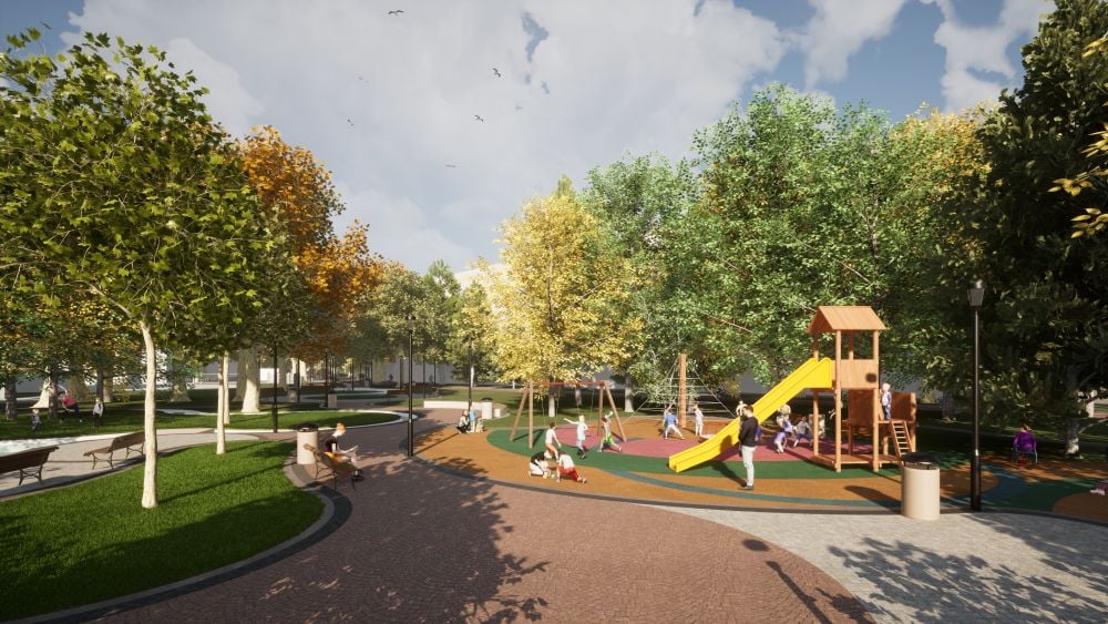 Планирана е цялостна замяна на настилката и инфраструктурата, в това число и на площадното пространство пред Областна администрация, където ще има водна повърхност и нови детски уреди.