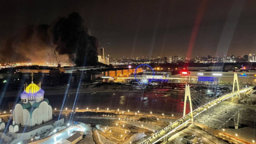 Видео, оповестено онлайн от съветските осведомителни организации, демонстрира облаци пушек и пламъци, издигащи се от постройката