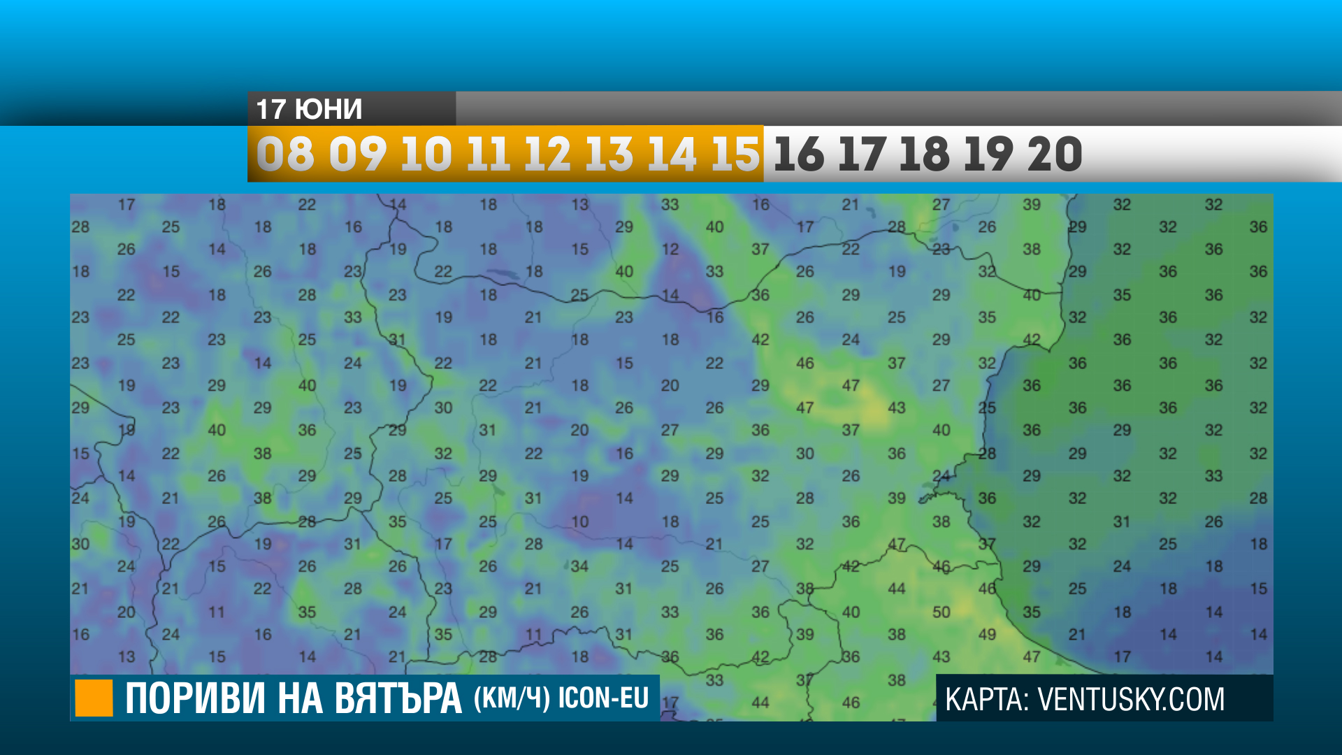 В планините – превалявания и гръмотевици след обяд. В масивите на Югозападна България количествата дъжд ще са по-значителни. Вятърът ще е на моменти мощен – със скорости до 50-60 километра в час. Около Черноморието ще е слънчево и съвсем изсъхнало. Температурите денем – до 27-29 градуса. Превалявания след обяд единствено на изолирани места, с по-голяма възможност по южната част на крайбрежието.