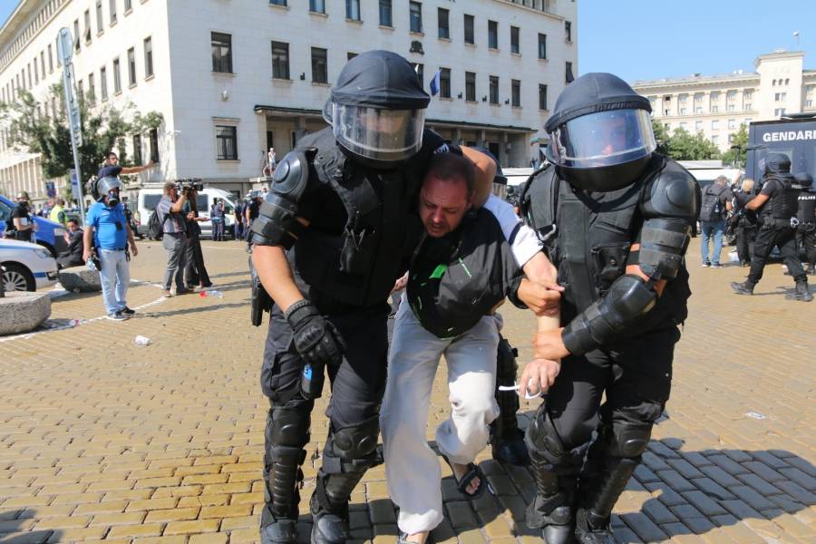 До конфликти и арести се стигна при митингите в центъра на София. Десетки хора бяха изведени от първия ред на митинга и отведени към полицейските бусове, откъдето те бяха извозени към Столична дирекция на вътрешните работи.