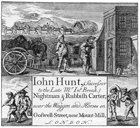 Англичаните стартират изнасянето на фекална маса в средновековието и ги продават на фермери като спомагателна почва. Задачата на чиновниците е обвързвана с изпразването на септични ями, както и килери. Ако няма купувачи, въпросните продукти би трябвало да се изнасят отвън града. Преди построяването на канализация, кварталите имат от 1 до 12 събирачи на почва. През 1875 година се приема нов закон, който изисква от всеки дом да има външна тоалетна, която да разрешава достъп на събирачите в нощните часове.