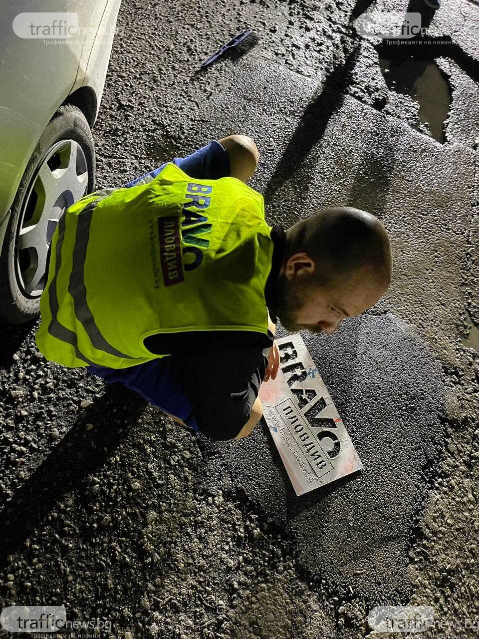 Доброволното формирование „ Браво, Пловдив ” продължава да изненадва пловдивчани с самодейностите си в града. След обновяването на спортните площадки, почистването на парковете, от седмици запалянковците пълнят дупки, които зеят от години, а Община Пловдив е услужливо е не запомнила за тях.