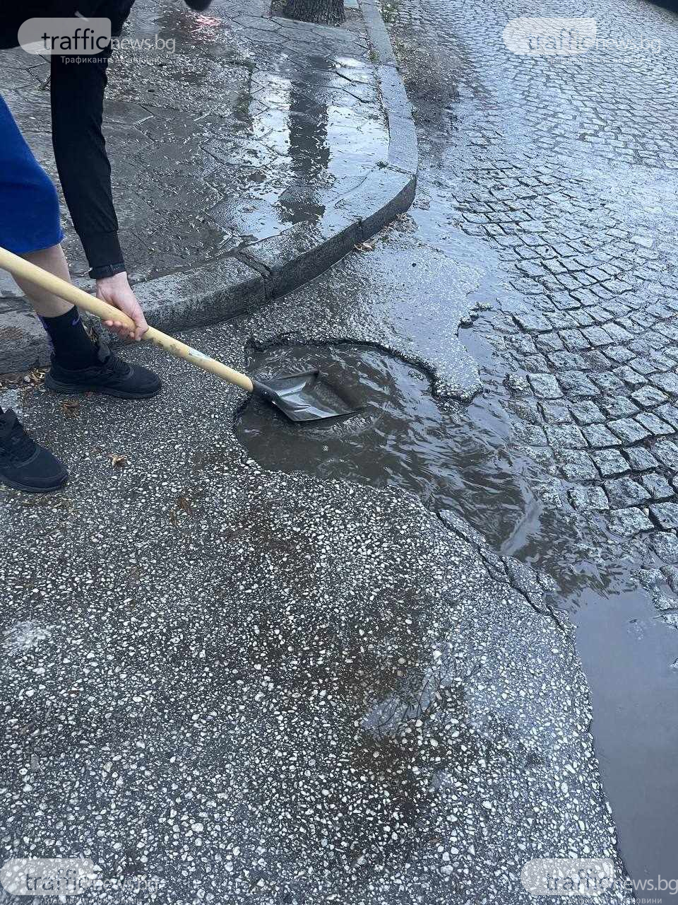 Докато доброволците изненадват позитивно пловдивчани, те също остава изумени от време на време, само че разликата е, че тези страсти при тях не са приятни. На следващата акция на „ Браво, Пловдив ” в уличките в Кючука, те се натъкват на големи кратери, наводнена улица, задръстена шахта и преливащи контейнери с отпадък. С други думи – цялостна абдикация от страна на Община Пловдив в решаването на обикновените си отговорности.