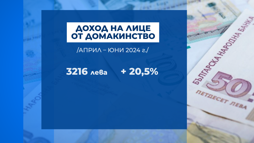 Разходът на разположение от домакинство сред април и юни 2024 година е 2826 лв. и също е повишен спрямо миналата година. Увеличението е с близо 19 на 100. Най-големи са разноските за храна, безалкохолни питиета, налози и обществени осигуровки.