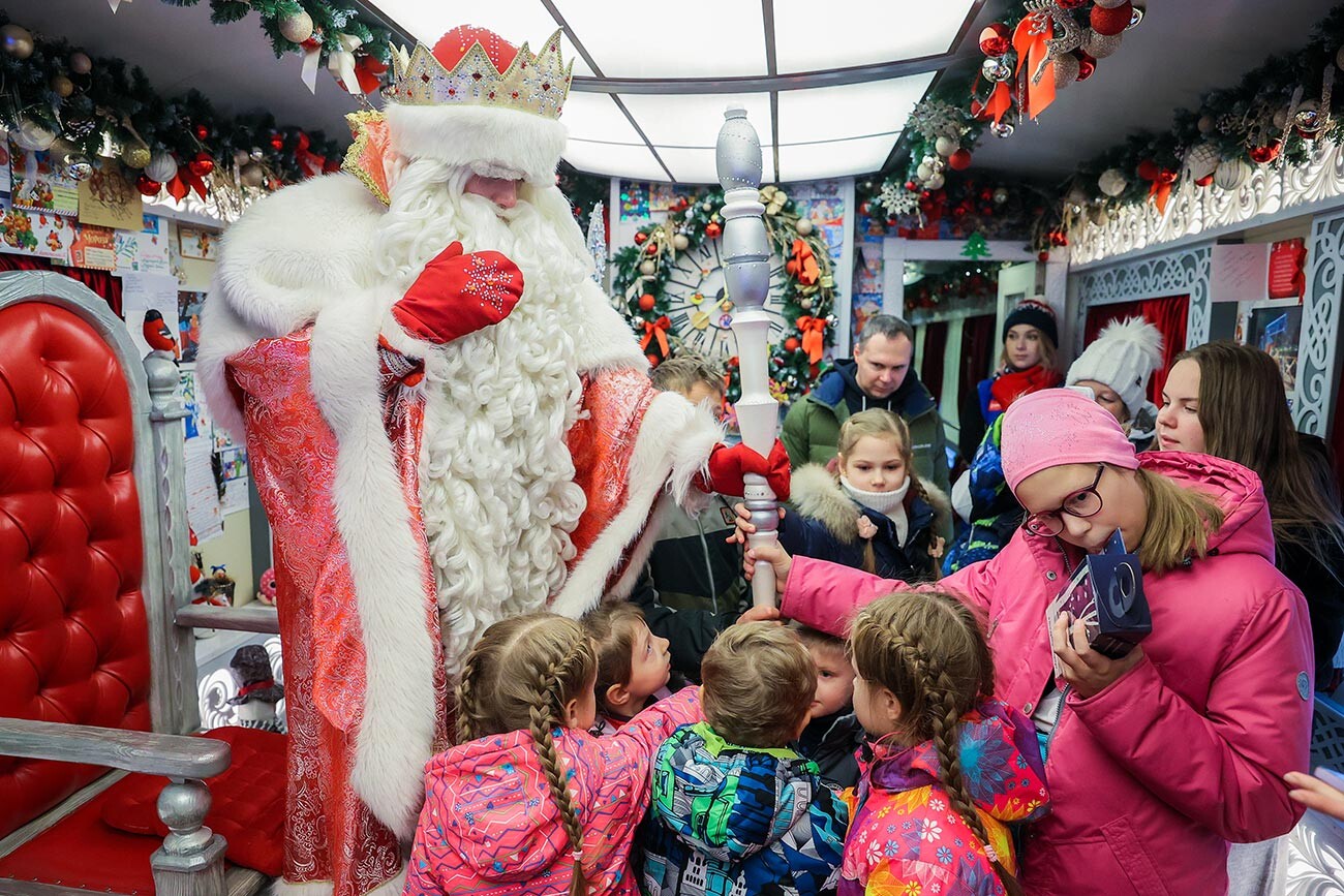В първия зимен ден Дядо Мраз дойде в уралския град Екатеринбург на специфичен празничен трен, с цел да поздрави децата. Тогава беше -15°C и става все по-студено.
