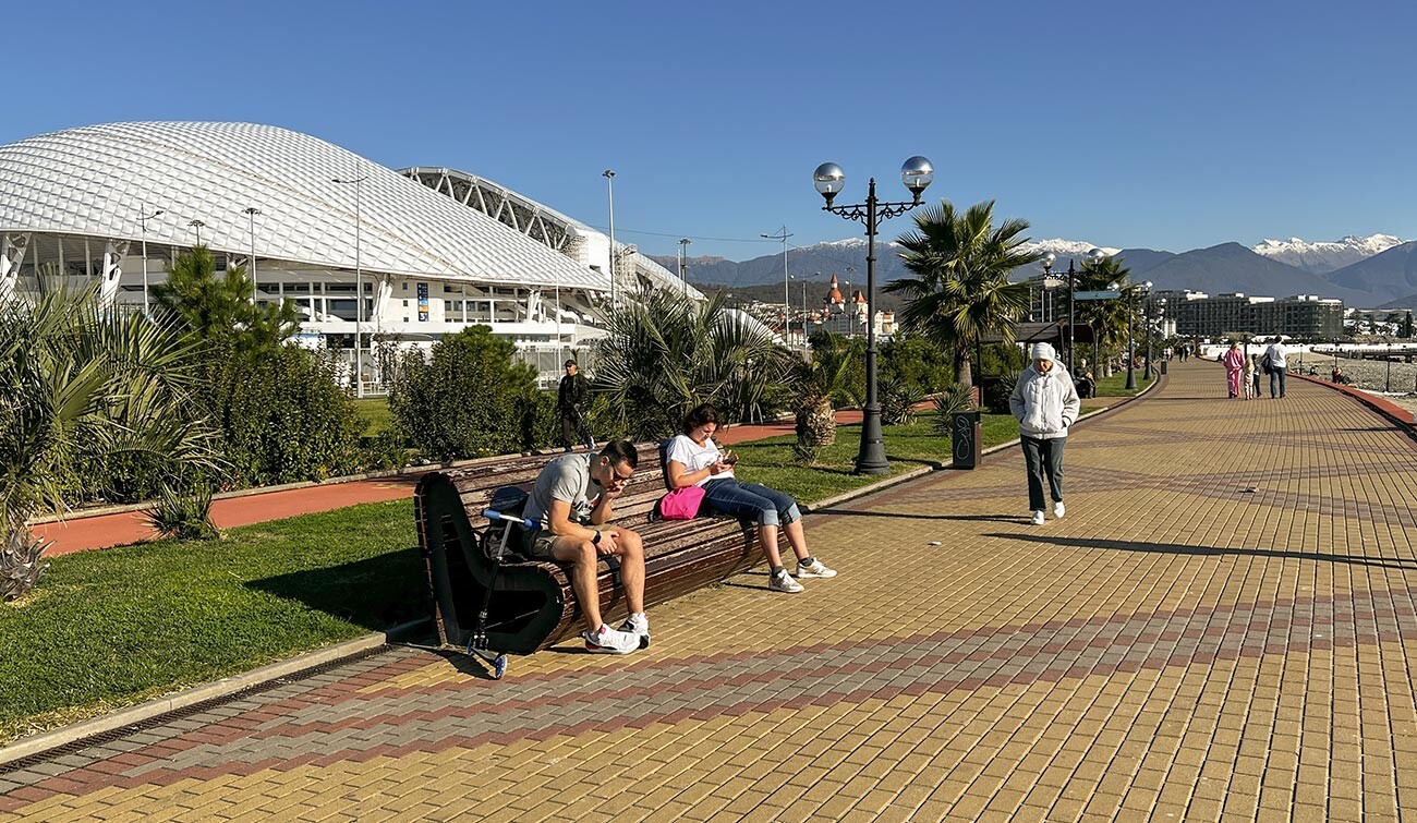 В Русия най-топла е зимата по крайбрежието на Черно море. Това е първият стадион на Олимпийския парк и крайбрежната алея на Нижнеимеретинския залив в Сочи. И термометрите сочат +17°C!