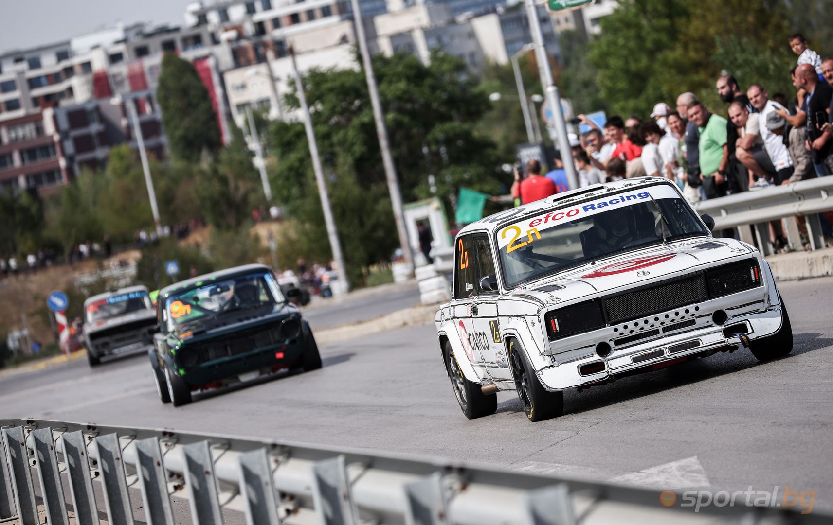 Надпреварата беше спряна в четвъртата обиколка, откакто колата на Евгени Семерджиев се повреди малко преди прекъсването за кръговото придвижване преди правата пред зала „ Левски София “. Заради разсипаното по пистата масло движещият се малко зад него Момчил Младенов не съумя да спре за кръговото и се удари в него, което наложи прекъсването на надпреварата.