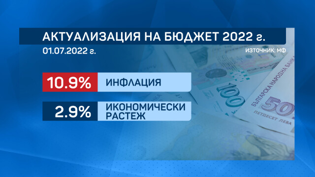 В актуализацията се планува повишаване на инфлацията до съвсем 11% и понижаване растежа на стопанската система ни до 2,9%.