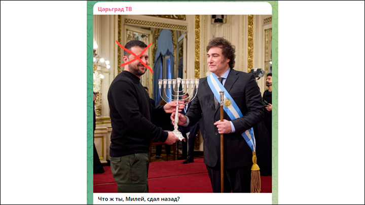 Освен това Майли не се ограничи да подари на госта от Киев менора (ритуален еврейски свещник със седем клона). Нещата стигнаха до такава степен, че няколко дни след визитата на Зеленски аржентинските власти взеха решение да изпратят в Украйна два хеликоптера Ми-171Е, закупени през 2011 година от Русия, с цел да подкрепят работата на антарктическите проучвателен станции.