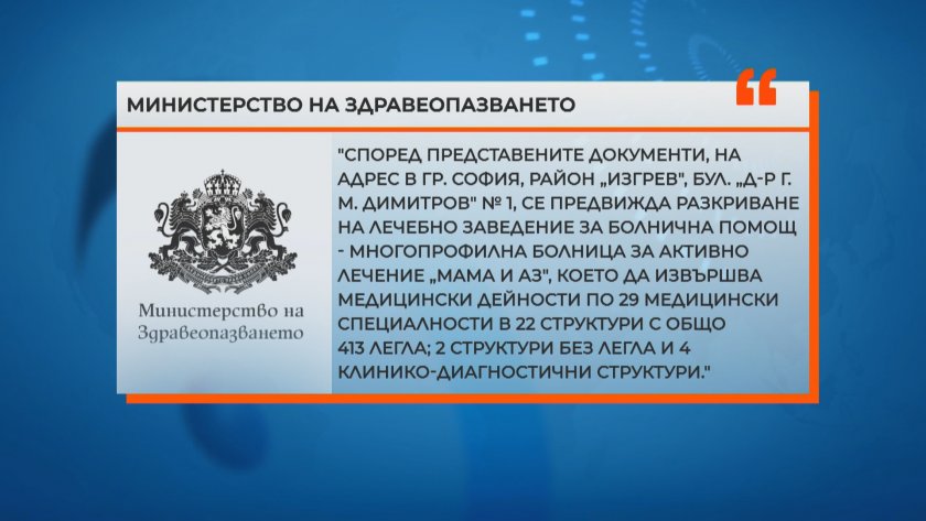 Здравното министерство поддържа построяването на съвременна инфраструктура на държавна детска болница и стартира диалози за ускорение на процеса по утвърждението на подобаващ терен. При тях е постъпило и предложение за градеж на частното лечебно заведение.