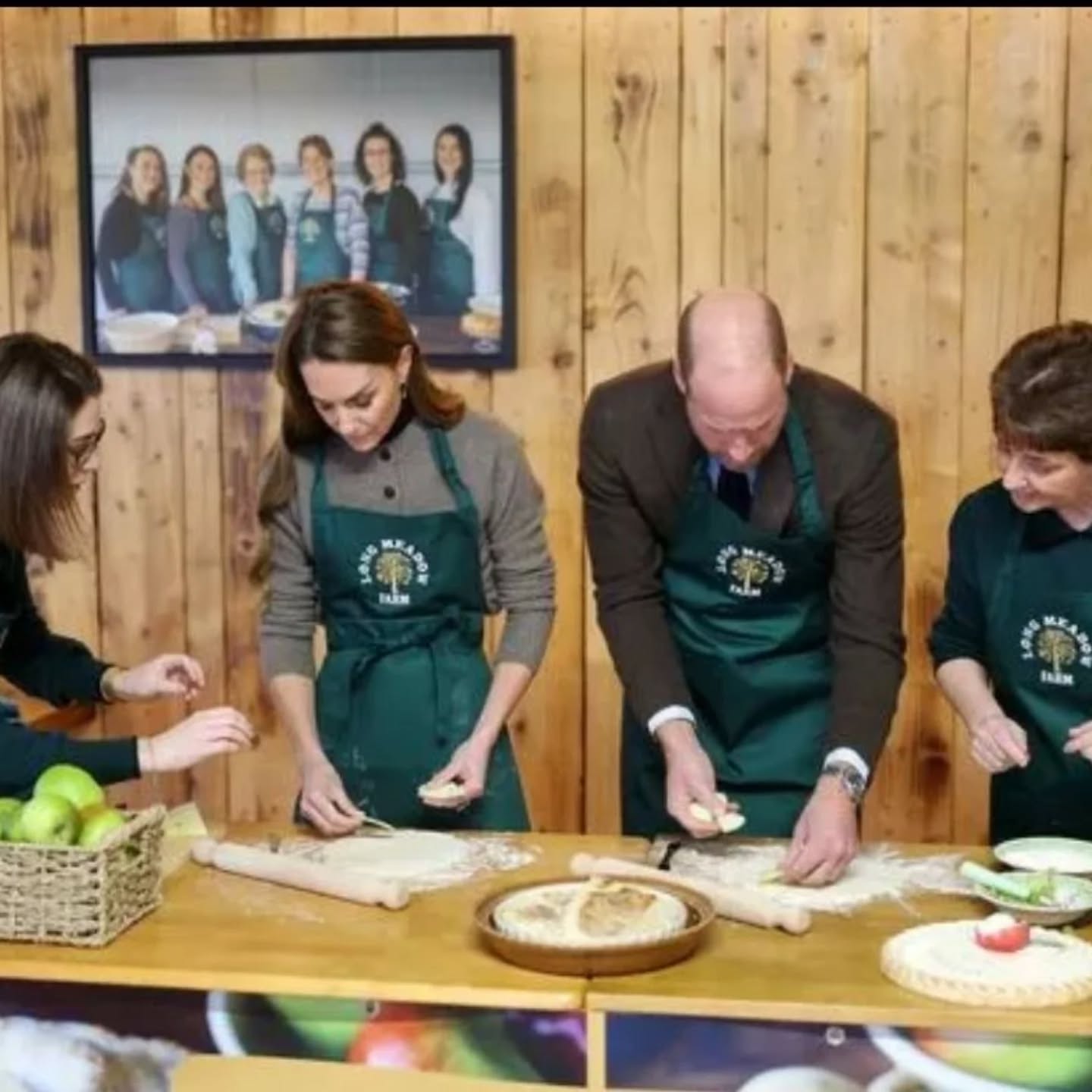 Уилям се опита да овладее тестото, до момента в който Кейт с усмивка го приканваше да го направи кръговиден. Принцът пък шеговито отвърна: „ А, кръговиден ли? Сега ми го казвате! Ако го погледнете от тази страна — е кръговиден “.Особено занимателно й беше на Кейт да се разноски из овощната градина сред дръвчетата, отрупани с ябълки. При толкоз доста плод не беше мъчно да си изпълни кошницата.
