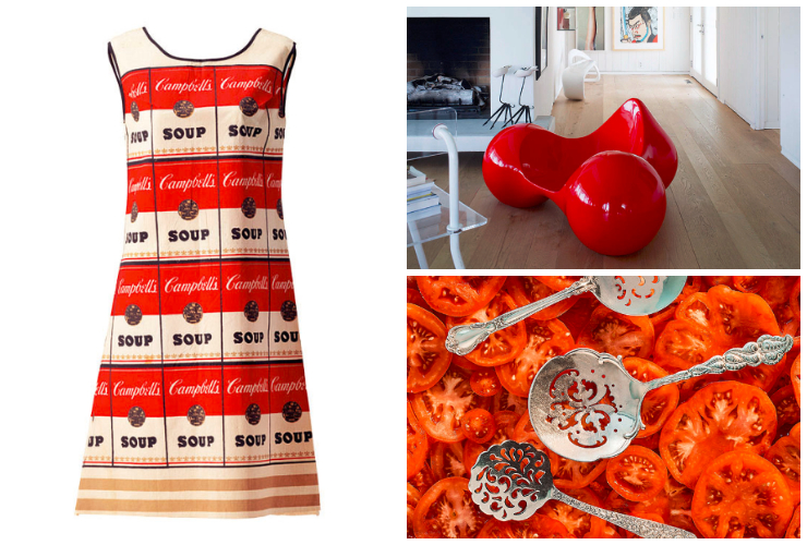 През 1966 година се появи и хартиената рокля за еднократна приложимост The Souper Dress.Приборите за сервиране на домати се появяват в късновикторианска Англия и са от чисто сребро. Тази форма на снобизъм ражда красивите дантелени лъжици, като концепцията е през отворите да се оттича сокът преди слагане на резенчето в чинията. Днес сходни принадлежности са обект на колекционерски интерес. Втората от горе надолу е Atlantis-Ailanthus (Sterling, 1899) на TIFFANY. Една от емблемите на скандинавския дизайн Ееро Арнио постоянно е обичал кръглата форма. Столът Tomato (1971) е комфортна овална статуя, в която двете сфери служат за подлакътници. Гледани начело, те припомнят на дизайнера двете О в tOmatO и по тази причина назовава по този начин стола. Изработен е от фибростъкло, което го прави подобаващ и за на открито, и сигурно е най-сладкият северен домат.