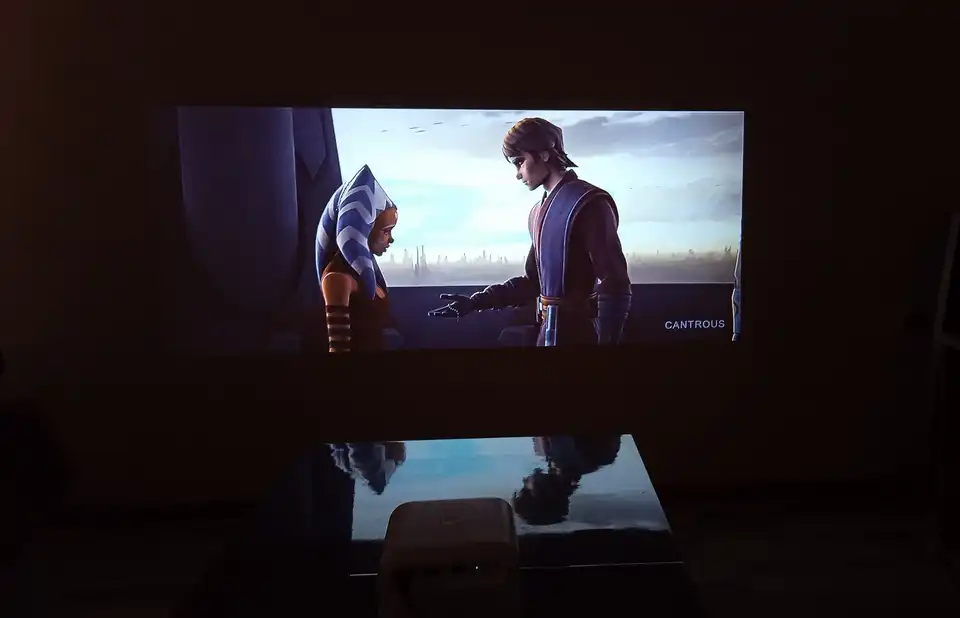 Направи ни усещане също непрекъснатият фонов звук от вентилатора, само че това е неизбежно, изключително за бюджетен проектор. Все отново има усъвършенстване и по този индикатор по отношение на първия T2 Max – шумът е сведен с 35%, до 35 dB/m в новия модел.