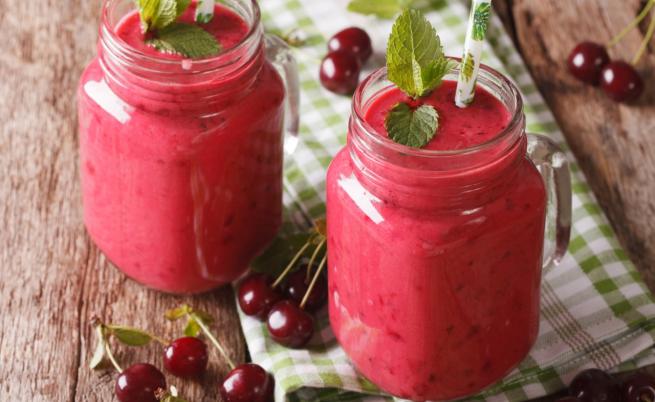 Необходими артикули: 100 грама череши, половин чаена чаша кисело мляко, 1 банан, сокът от половин лимон, няколко бучки лед