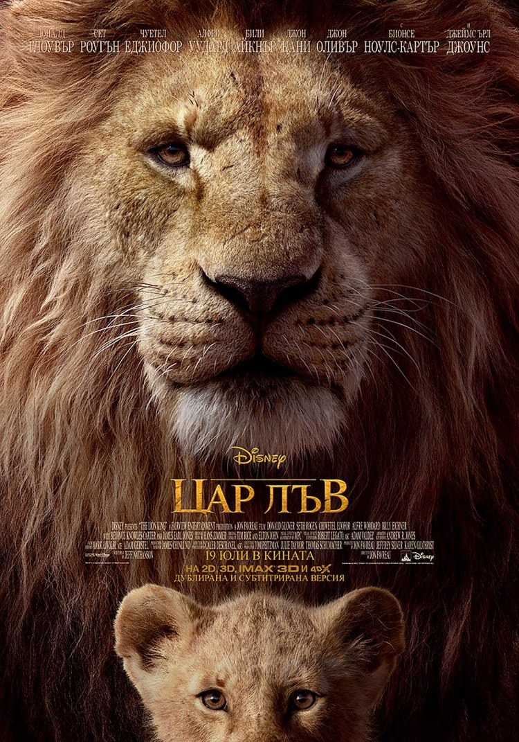 Премиерата на римейка на паметната анимация от 1994 година „ Цар Лъв “ ще е на 19 юли 2019 година, а измежду актьорите, озвучаващи функциите, са Сет Роугън, Доналд Глоувър, Чиуетел Еджиофор, Джеймс Ърл Джоунс и Бионсе.