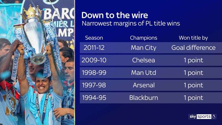 За седми път в историята на Висшата лига битката за купата ще се реши в последния кръг. В четири случая едвам една точка разделя първия и втория след последния съдийски сигнал за сезона. Най-голяма обаче е драмата през 2011/12, когато точно “гражданите” вкараха два гола в добавеното време за успеха с 3:2 над Куинс Парк Рейнджърс. По този метод те сграбчиха трофея отдолу под носа на Манчестър Юнайтед единствено поради по-добрата си голова разлика.