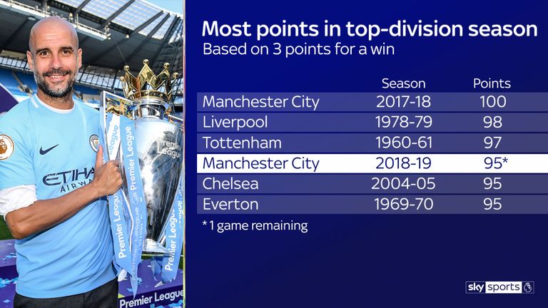 Невероятно, само че актуалният актив на Ливърпул от 94 точки щеше да е задоволителен отборът да бъде коронован като първенец на Англия в 113 от предходните 119 сезона на първото равнище на локалния футбол. Клубното достижение за най-вече точки обаче няма по какъв начин да бъде усъвършенствано още в неделя. През 1979 година воденият от Боб Пейсли състав събира 98 пункта. Цялостният връх обаче принадлежи на Сити от предишния сезон - 100 точки. “Гражданите” са покрай това да станат първият тим, защитил купата си от 2008/2009, когато Юнайтед прави това.