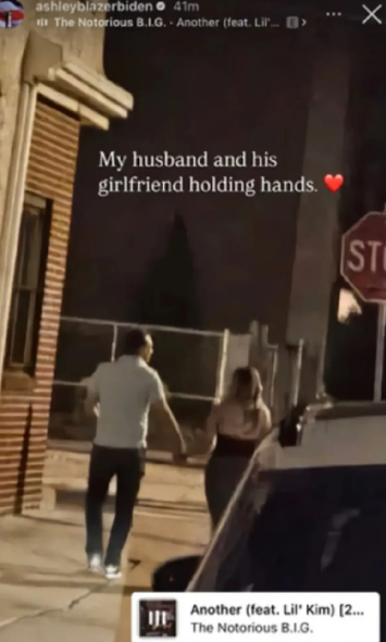 44-годишната Ашли Байдън показа фотография, за която се твърди, че демонстрира (все още) брачна половинка ѝ доктор Хауърд Крейн с непозната жена. Кадърът е сниман единствено няколко часа преди дъщерята на някогашния президент публично да подаде молба за бракоразвод.