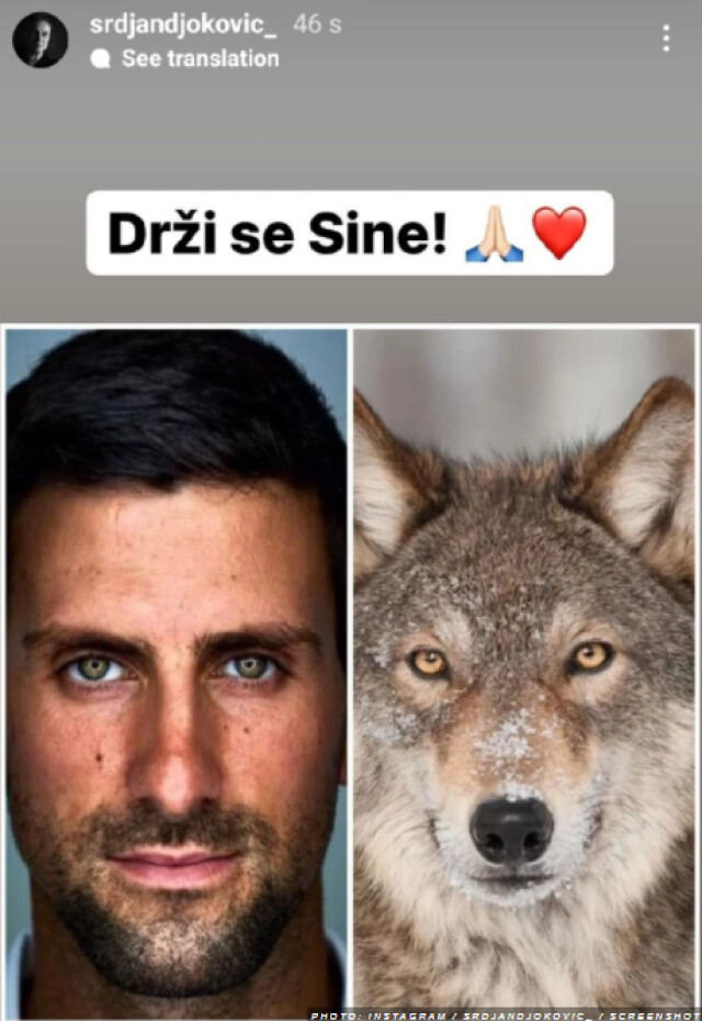 " Дръж се, сине! ", написа той в обществените мрежи, публикувайки стори, в което съпостави Новак с вълк.