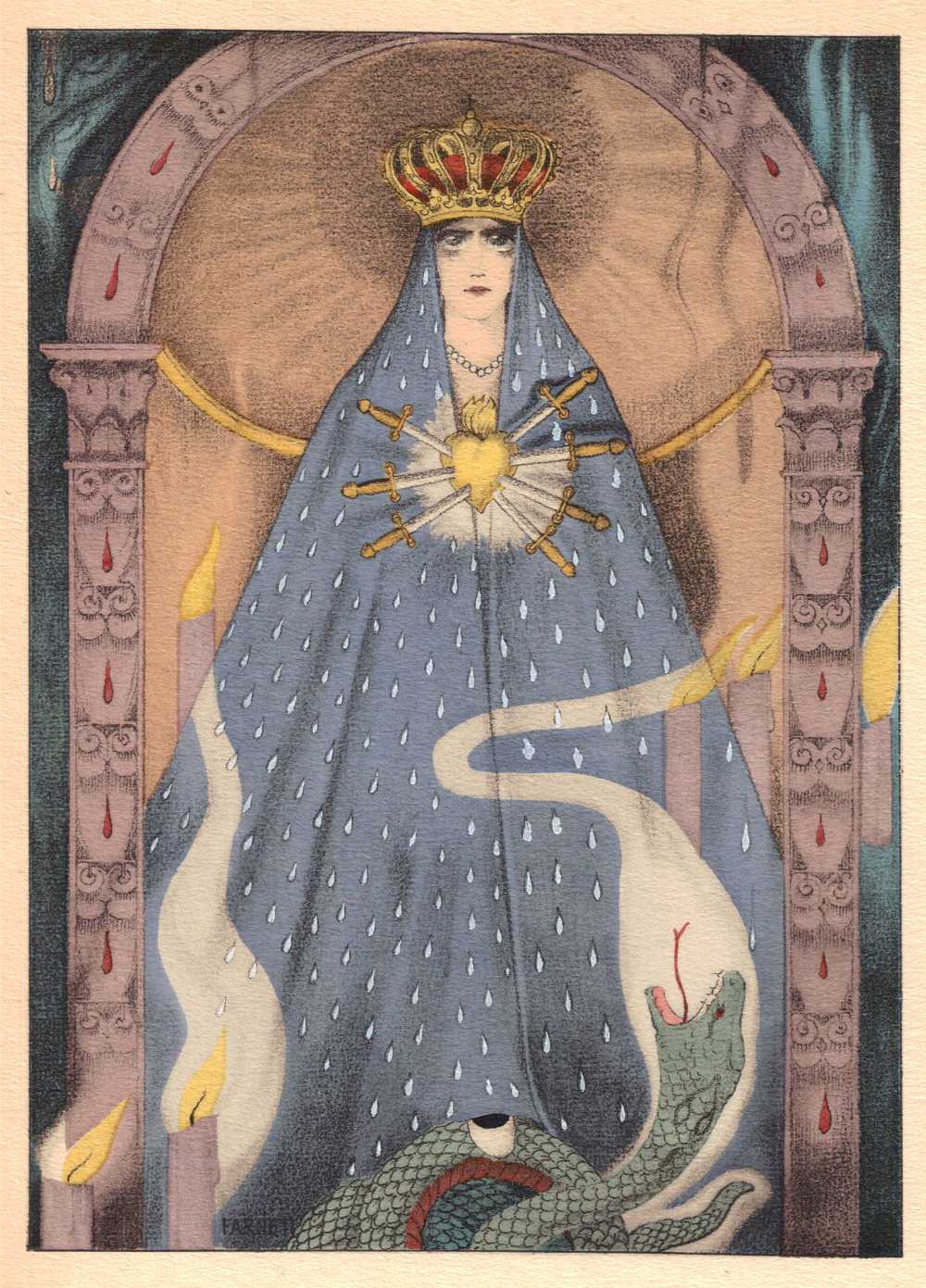 Сборникът със стихотворения на френския поет Бодлер „ Цветя на злото ” (Les Fleurs du mal) е оповестен за първи път на 25 юни 1857 година и провокира правосъден развой, в края на който Бодлер би трябвало да заплати санкция за нарушение нормите на публичното държание и морал, а също и да отстрани от стихосбирката шест от най-неприличните поеми. През 1935 година италианският актьор Карло Фарнети облича скандалните „ Цветя на злото ” във превъзходни илюстрации.
