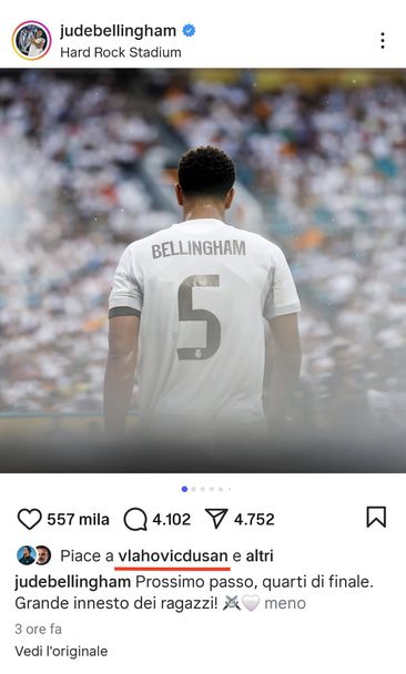 Влахович хареса обява в обществените мрежи на Джуд Белингам, в която халфът на Реал изрази задоволството си от класирането на отбора за идната фаза. Постъпката на сърбина незабавно беше отразена от медиите на Апенините, които я поясняват като още една индикация, че Влахович напълно скоро ще си тръгне от Юве.
