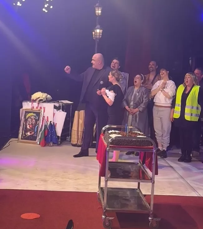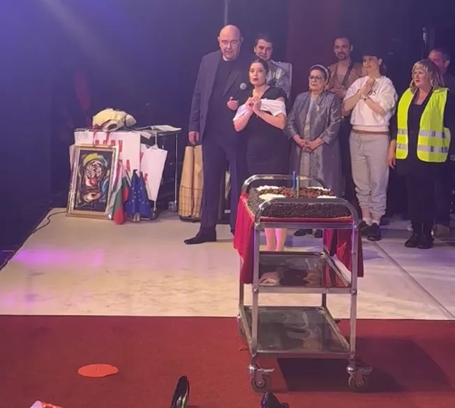 Лично шефът на сатиричния спектакъл Калин Сърменов й сервира дарове пред очите на сътрудници и аудитория. Освен, че се обърна към всички и им засвидетелства любовта си, Алекс насочи и предложение, на което не може да се откаже и то пред погледите на стотици хора в залата.
