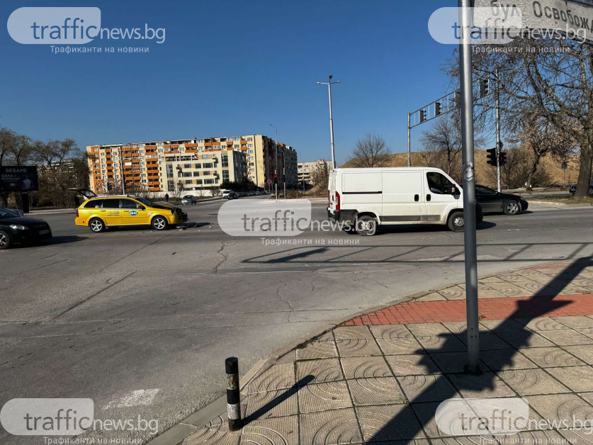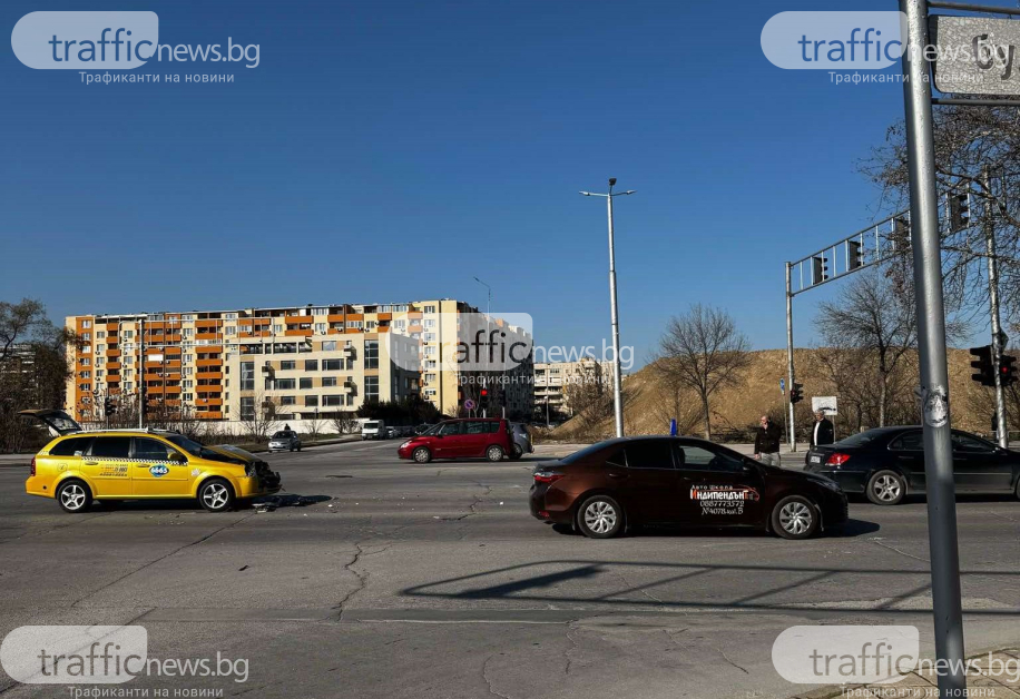Към момента няма данни за потърпевши, само че видно от фотосите има нанесени материални вреди по двете коли. По-сериозно е потърпевш таксиметров автомобил, който се е забил в задницата на хонда.