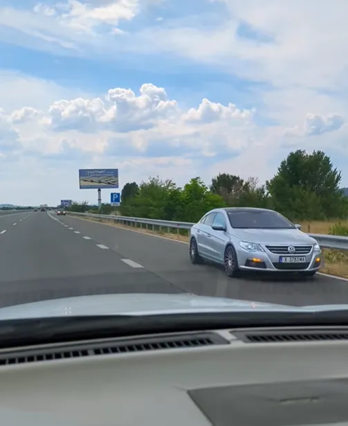 Два автомобила са снимани да се движат в насрещното по автомагистрала „ Тракия “.