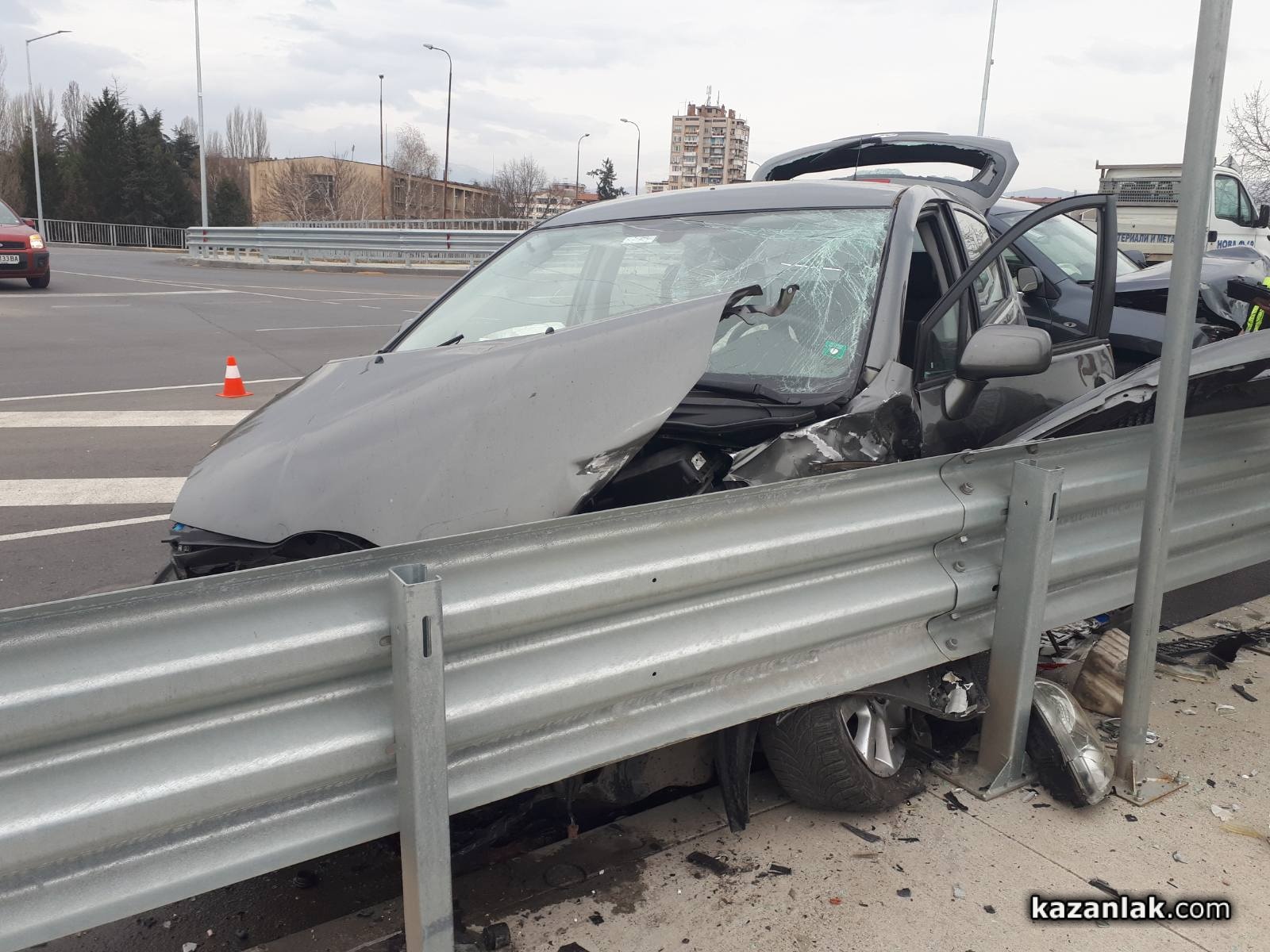 Тежка катастрофа в Казанлък, шофьор е в болница СНИМКИ