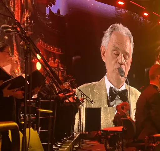 Програмата на концерта в „ Емират Палас “ в Абу Даби включваше известни арии от опери, музикални моменти от творби като „ Уестсайдска история “ на Джордж Гершуин, кино лентата „ Карибски пирати “, оперите „ Кармен “, " Риголето “, „ Турандот “ и „ Трубадур “, както и несъмнено „ Time to say goodbye ”.