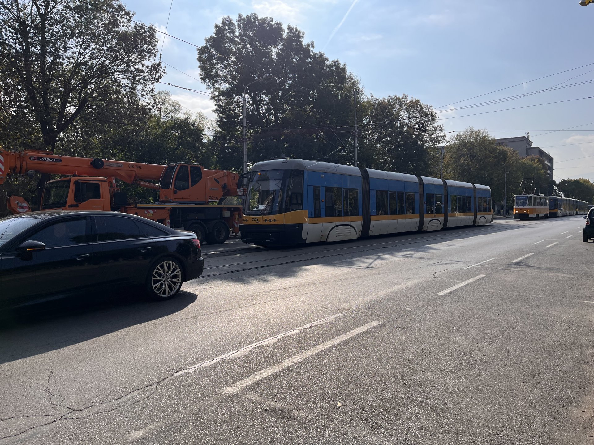 Движението на трамваите по бул. " Христо Ботев " в двете направления е спряно. Заради в региона се е образувало огромно запушване.
