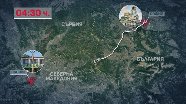 В 4:30 ч. екипът на Стоян към този момент наближава границата със Северна Македония. Докато екипът на Криси минава през инспекция на ръчен багаж и паспортен надзор. Това й лишава към 20 до 25 минути. Следва търпеливо очакване пред изхода за отклоняване към самолета.