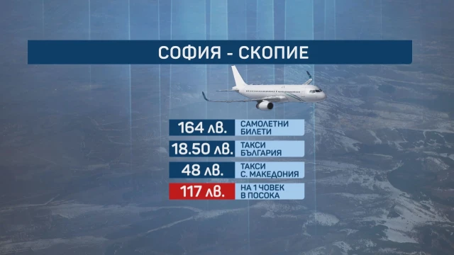 Разходът за таксито от храм-паметника „ Александър Невски “ до летището е близо 20 лева А по отношение на цената на самолетния билет – Криси и операторът Саша Осиченко си купуват допустимо най-евтиния вид – единствено с ръчен багаж. Излиза им по 82 лева на човек.