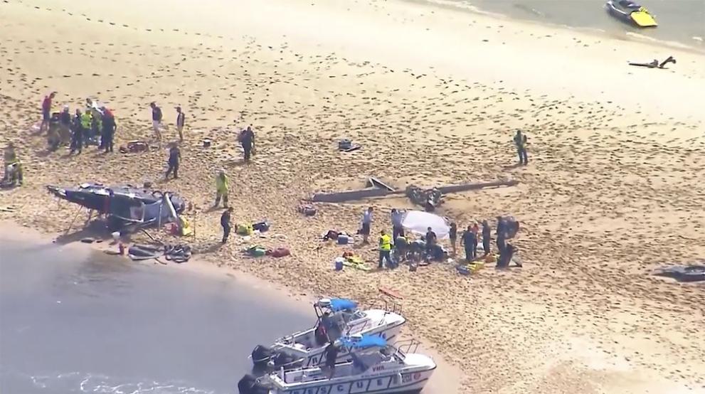 Според фотоси, които сподели публичната телевизия ABC, единият хеликоптер е преобърнат на пясъка на няколко метра от брега.