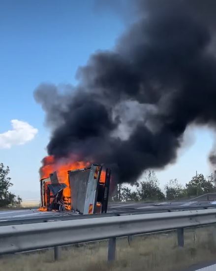 Горящи камиони спряха движението по Тракия ВИДЕО